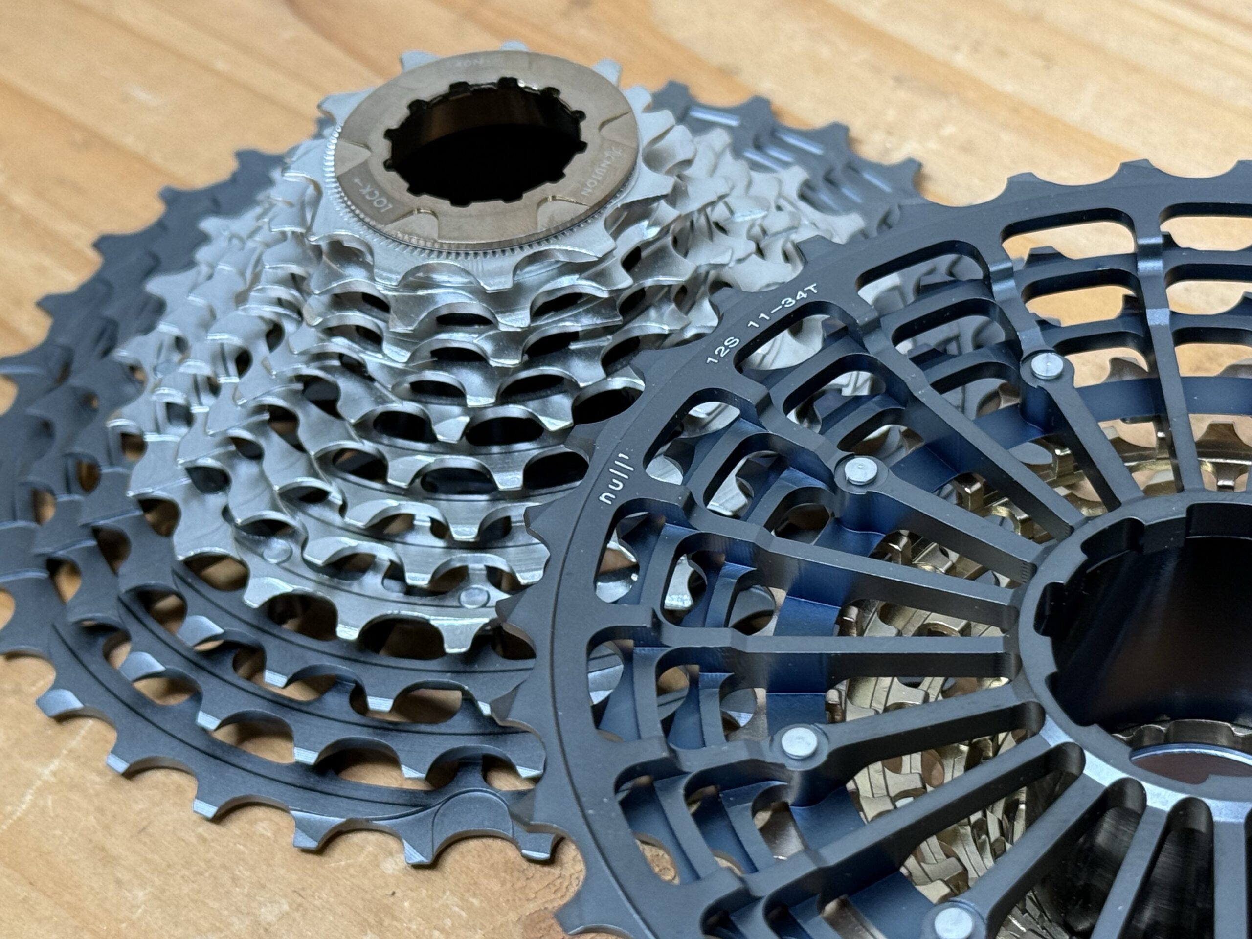 今回入荷したシマノ12速用11-34Tのnull¹と、デュラエースの11-34Tを実測比較するとご覧の通り。